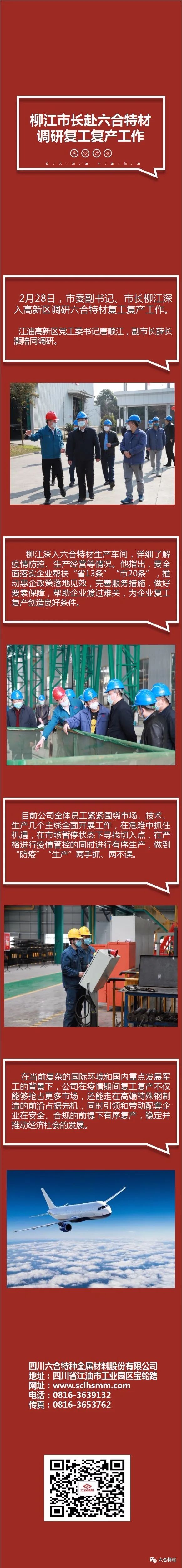 2月28日,市委副书记、市长柳江深入高新区调研明胜m88官网复工复产工作。江油高新区党工委书记唐顺江,副市长薛长灏陪同调研。