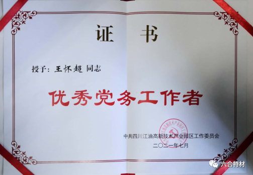 明胜m88官网机电班班长王雪兵、综合部部长侯荣光荣获高新区优秀党员称号;物理检测室主任边锋,党支部副书记王怀超荣获高新区优秀党务工作者称号。
