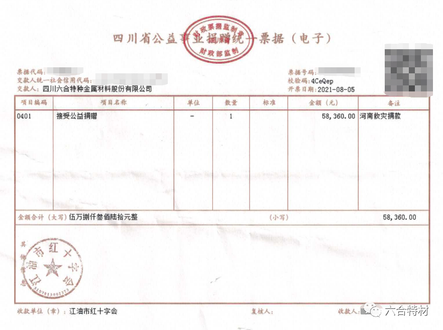 8月5日,明胜m88官网积极贯彻落实习近平总书记对防汛救灾工作作出的重要指示精神,通过江油市红十字会向河南灾区捐款合计58360元,支持河南水灾经济救援和灾后恢复重建工作。